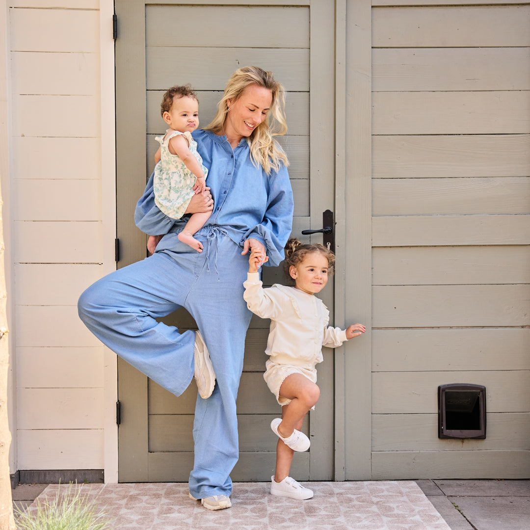 Fleursome begon vanuit mijn eigen ervaring als moeder van Fleur en Elin. Elk seizoen was ik opnieuw op zoek naar babykleding die mooi op elkaar afgestemd is, fijn draagt en praktisch is in het dagelijks leven, zonder eindeloos te hoeven kiezen.