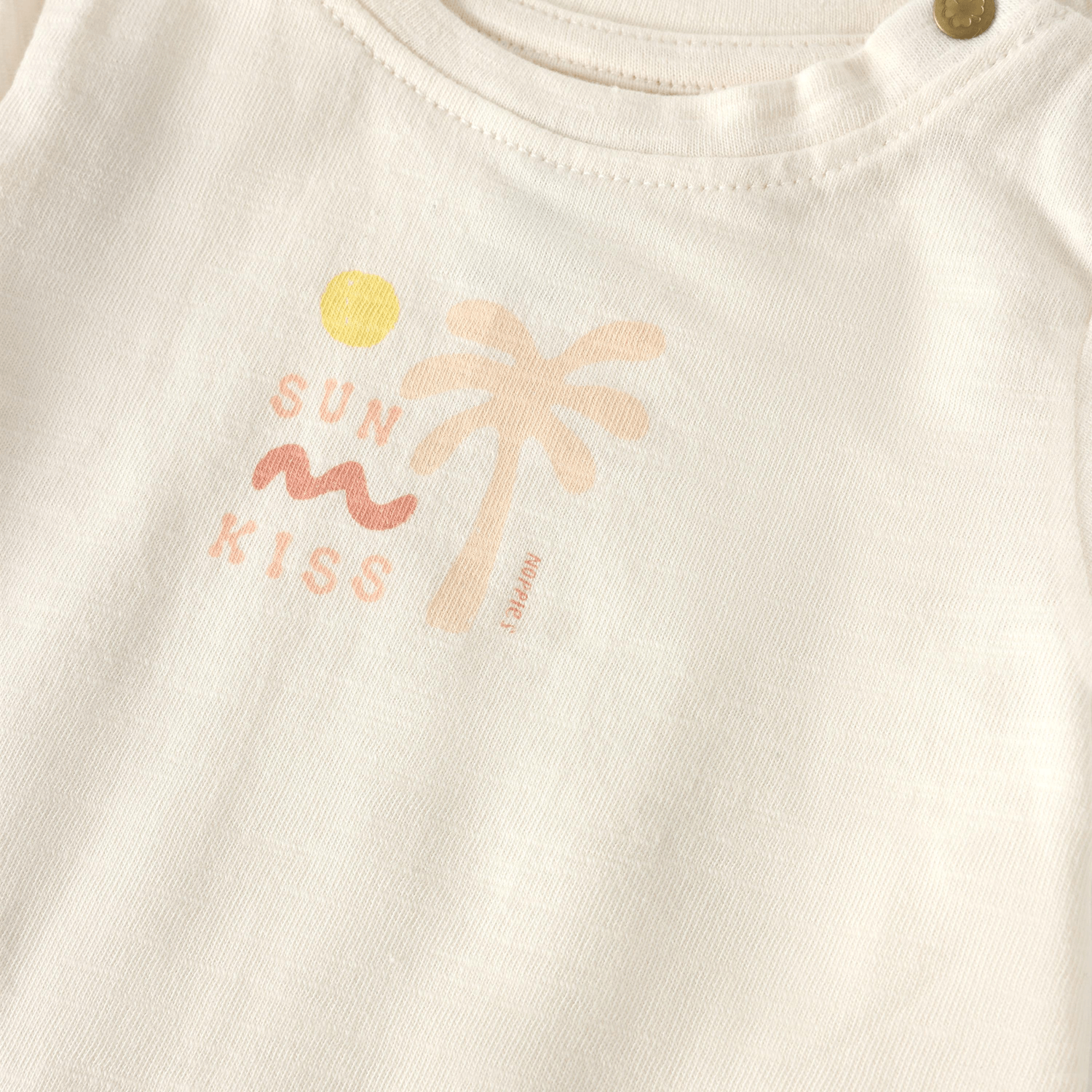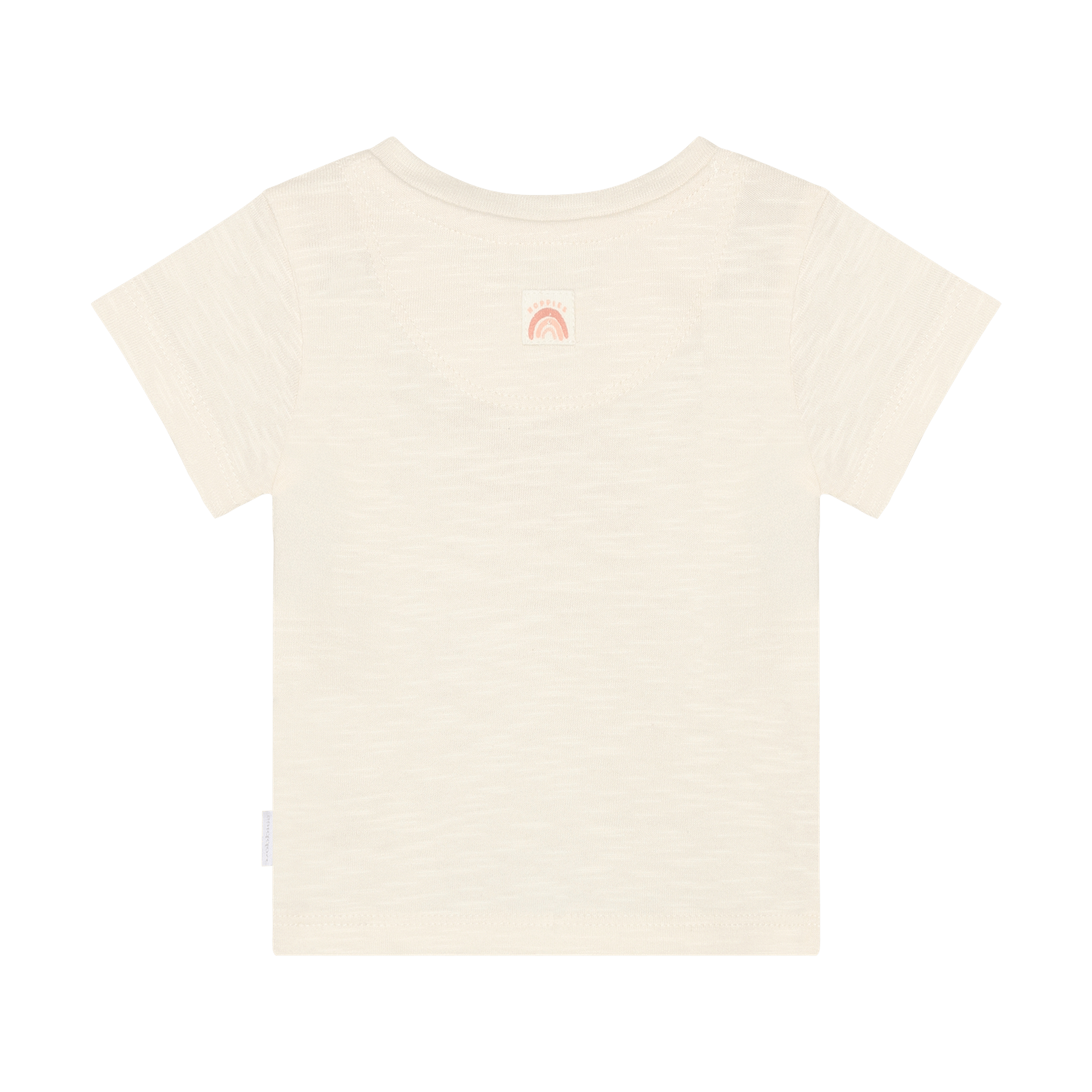 Dit baby T-shirt is gemaakt van slub jersey en voelt zacht aan op de huid van je kleintje. Het biologische katoen zorgt voor ademende en comfortabele baby kleding. De lichte kleur maakt dit baby shirt makkelijk te combineren met andere baby kleding.