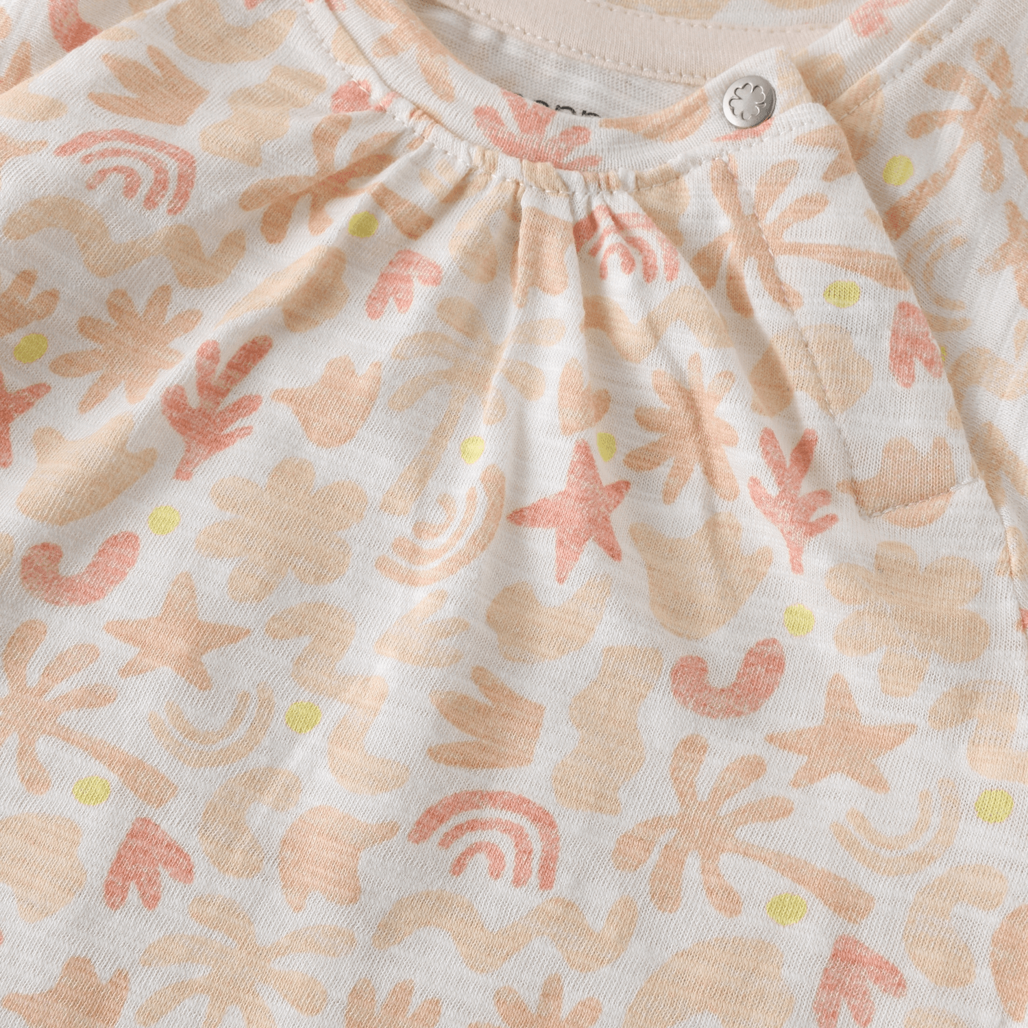 Deze baby top is gemaakt van zachte slub jersey. Het biologische katoen voelt prettig aan op de huid van je kleintje. De subtiele all over print geeft deze baby top een speelse en zachte uitstraling.